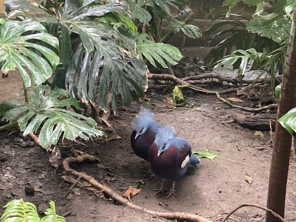 Porumbelul cu coroană este cea mai mare specie de porumbel din lume! Știați că este numit după creasta sa spectaculoasă, ca de dantelă albastră, de pe cap? Această pasăre maiestuoasă oferă o priveliște cu adevărat regală. Nu uitați să o vizitați!